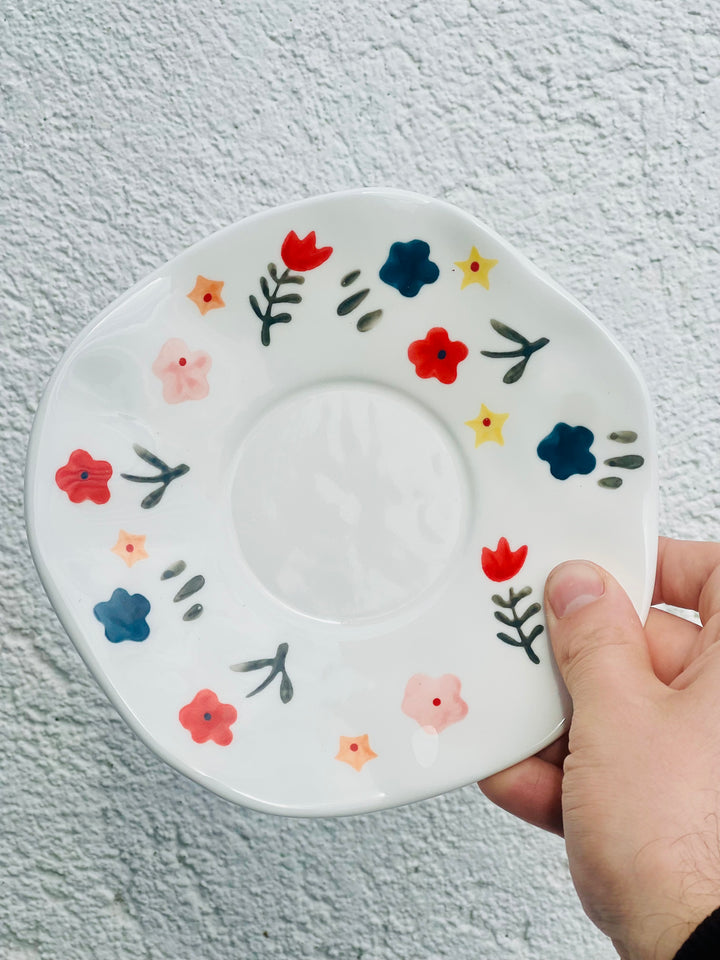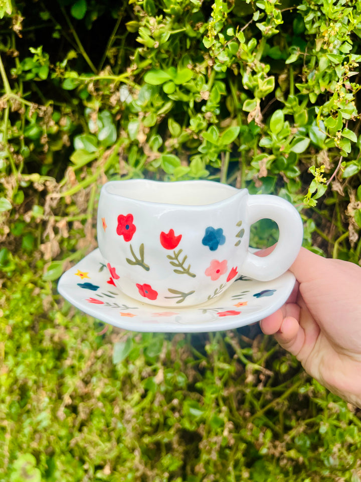 Taza Flores V1 Ìrregular + Plato Para Té y Cafe