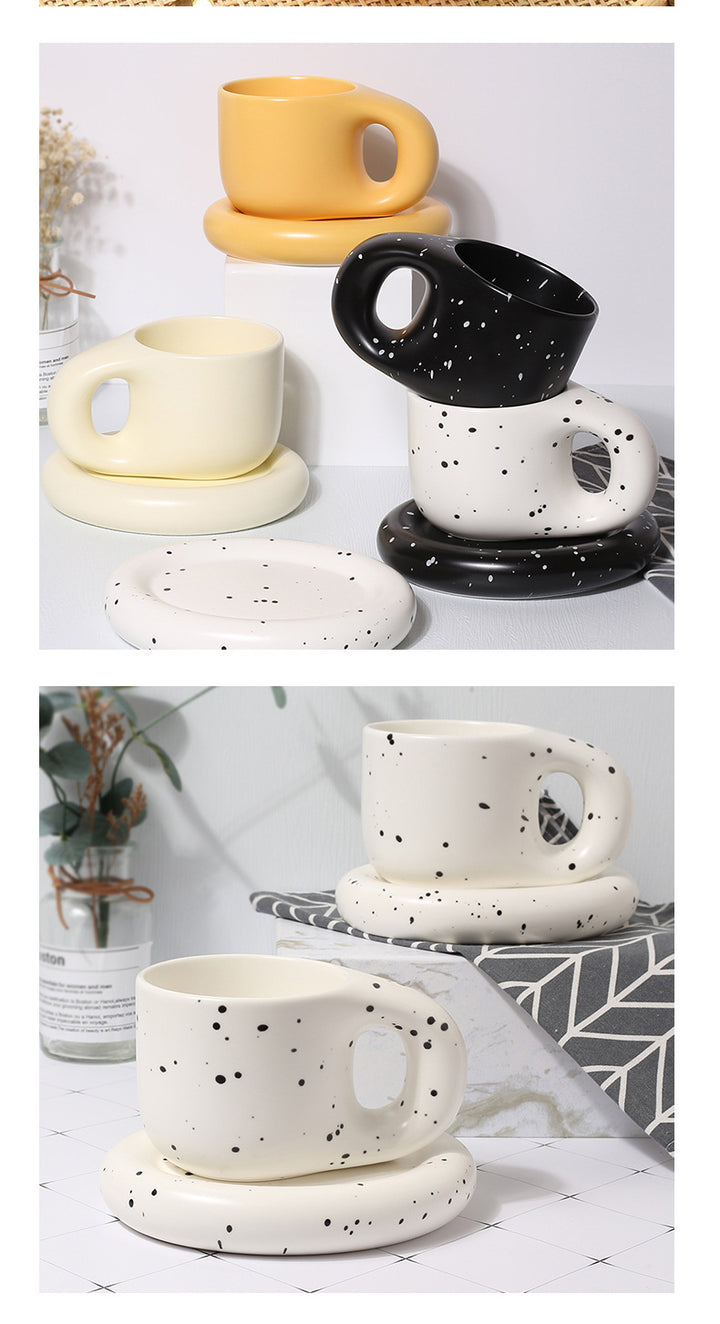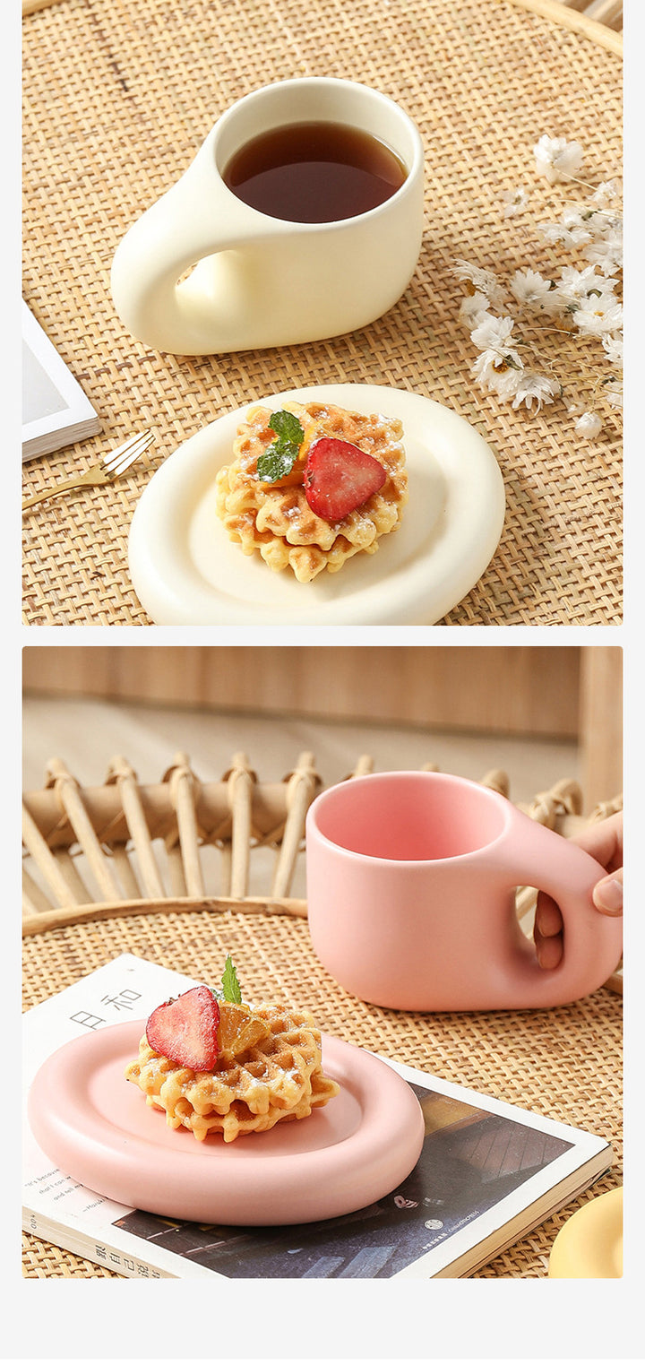 Incluye un plato a juego, ideal para acompañar con galletas o apoyar la taza cómodamente. Perfecta para quienes valoran el diseño nórdico, la simplicidad y el encanto de lo hecho a mano.