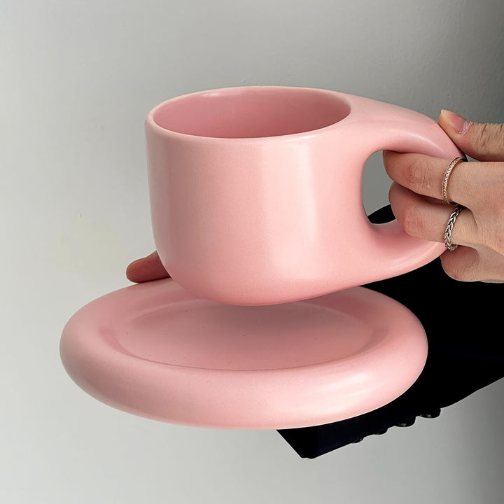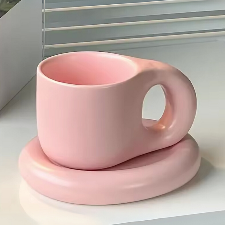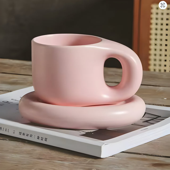 Taza Tazon Escandinava Rosada + Plato (Té y Café)